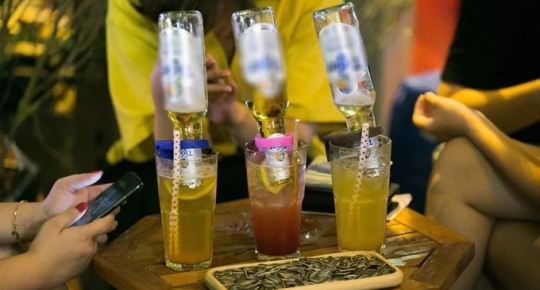 Overturned beer bottle in mojito, Hanoi's new nightly fix